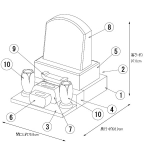 デザイン洋墓のシンプルタイプです。洋型でありながら花立・供物台・水鉢など和型機能が充実しています! 伝統的な和墓機能をそおのままに、石碑デザイン洋墓にしたシンプルタイプです。花立・供物台・水鉢など和型基本機能が充実しています!石材も高級石材を使用していますので是非、サンプル石材をお取り寄せいただき品質の良さをご確認ください!価格は日本一の適性価格を目指し関東・関西・東海・中国地方での施工が可能。もちろん送料無料・標準設置・標準施工料・墓石字彫り・当社独自の50年保証も含んで全て込みでの価格なのでご安心してご購入ください!自信を持ってお勧めします。日本一の激安に挑戦した本多石材が誇る気合の商品です 【詳細情報】 ●(1)横石:磨き・仕上/3面磨き ●(2)後石:磨き・仕上/2面磨き ●(3)前板:磨き・仕上/5面磨き ●(4)前石:磨き・仕上/3面磨き ●(5)上台:磨き・仕上/本磨き ●(6)線香立:磨き・仕上/本磨き ●(7)水鉢:磨き・仕上/本磨き ●(8)竿:磨き・仕上/本磨き ●(9)供物台:磨き・仕上/本磨き ●(10)丸花瓶型花立:磨き・仕上/本磨き